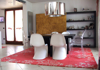 Tappeto realizzato perconto di privato, pezzo unico prodotto su personalizzazione del nostro mod.Floralia (design Paola Lambardi) serie "Segni di Colore"
